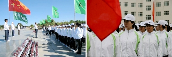 勿忘國恥,振興中華。正在接受軍訓(xùn)的我校2008級新生在教官的帶領(lǐng)下默哀肅立,表情莊重,共同傾聽了這警示后人、勿忘國恥的警報,表達他們牢記歷史,反對侵略,奮發(fā)圖強,振興中華的決心。