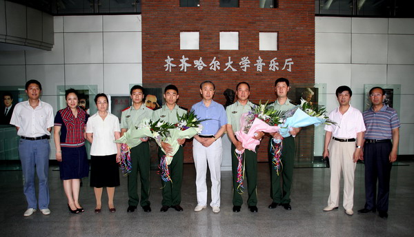 校長(zhǎng)唱江華、校黨委副書記王鳳琴親切會(huì)見了“齊齊哈爾抗震救災(zāi)英模事跡報(bào)告團(tuán)”成員:市消防支隊(duì)副支隊(duì)長(zhǎng)、赴川抗震救災(zāi)突擊隊(duì)隊(duì)長(zhǎng)石家濱同志,市消防支隊(duì)三中隊(duì)副中隊(duì)長(zhǎng)、三江突擊分隊(duì)隊(duì)員王兆敏同志,市消防支隊(duì)特勤大隊(duì)中隊(duì)長(zhǎng)、北川突擊分隊(duì)隊(duì)員劉凱同志,市消防支隊(duì)一中隊(duì)四川籍戰(zhàn)士王家強(qiáng)同志,并與他們合影留念。