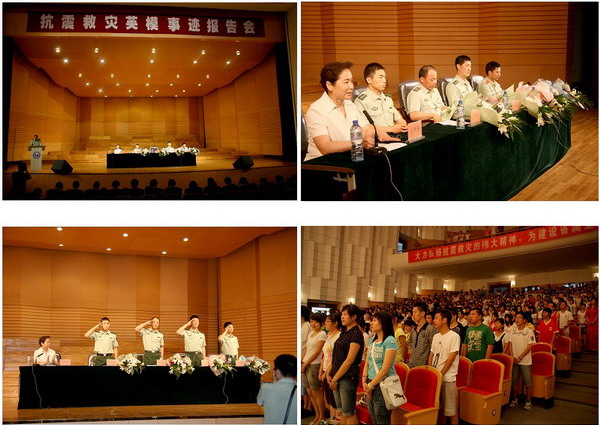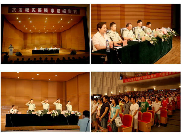 我校黨委副書記王鳳琴在主持報(bào)告會(huì)時(shí)指出,2008年5月12日發(fā)生的汶川大地震,是新中國(guó)成立以來(lái)破壞性最強(qiáng)、波及范圍最廣、救災(zāi)難度最大的一次地震。地震發(fā)生后,在以胡錦濤同志為總書記的黨中央堅(jiān)強(qiáng)領(lǐng)導(dǎo)下,全黨、全軍、全國(guó)各族人民發(fā)揚(yáng)一方有難、八方支援、自力更生、艱苦奮斗精神,萬(wàn)眾一心,眾志成城,迎難而上、百折不撓,取得了抗震救災(zāi)的重大勝利,涌現(xiàn)出無(wú)數(shù)可歌可泣的英雄模范,感動(dòng)了中國(guó),感動(dòng)了世界。今天,我們邀請(qǐng)到的“齊齊哈爾抗震救災(zāi)英模事跡報(bào)告團(tuán)”就是他們中的模范代表。他們堅(jiān)持人民利益高于一切,祖國(guó)之愛高于一切,把人民受難的地方當(dāng)作自己的戰(zhàn)場(chǎng),發(fā)揚(yáng)一不怕苦,二不怕死的光榮傳統(tǒng),保持能打硬仗、連續(xù)作戰(zhàn)的優(yōu)良作風(fēng),哪里有險(xiǎn)情,就戰(zhàn)斗在哪里,哪里有困難,就出現(xiàn)在哪里,充分體現(xiàn)了人民武警的英雄本色,展示了人民武警忠于黨、熱愛人民、忠實(shí)履行職責(zé)的良好形象,也展現(xiàn)了鶴城人的新形象、新風(fēng)采,更充分體現(xiàn)了齊齊哈爾人民對(duì)災(zāi)區(qū)人民的深情厚誼。他們的報(bào)告感人肺腑、催人奮進(jìn),是我們青年學(xué)子成長(zhǎng)成才道路上一次深刻的教育和感悟。在這次抗震救災(zāi)中,涌現(xiàn)出來(lái)的許許多多的英雄模范人物,他們是我們這個(gè)時(shí)代的楷模,是我們學(xué)習(xí)的榜樣。多難興邦。每一次國(guó)家和民族的災(zāi)難,都會(huì)成為青年一代成長(zhǎng)的力量。地震讓我們失去了很多很多,但也讓我們收獲了愛,收獲了尊重,收獲了堅(jiān)強(qiáng),收獲了信念與奮進(jìn)。她要求,在報(bào)告會(huì)之后,全校各級(jí)團(tuán)學(xué)組織和廣大青年學(xué)生要迅速掀起學(xué)習(xí)抗震救災(zāi)英模、弘揚(yáng)抗震救災(zāi)精神的熱潮,把偉大的抗震救災(zāi)精神轉(zhuǎn)化為刻苦學(xué)習(xí)、發(fā)奮成才的強(qiáng)大動(dòng)力,貫穿到學(xué)習(xí)生活中,落實(shí)在具體行動(dòng)上,體現(xiàn)到優(yōu)異成績(jī)里,努力把自己培養(yǎng)成為德智體美全面發(fā)展的合格的社會(huì)主義建設(shè)者和可靠接班人。