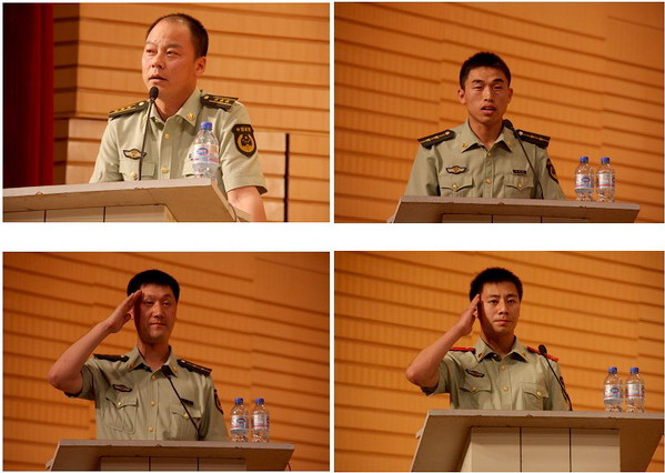 “齊齊哈爾市抗震救災(zāi)英模事跡報(bào)告團(tuán)”成員:市消防支隊(duì)副支隊(duì)長(zhǎng)、赴川抗震救災(zāi)突擊隊(duì)隊(duì)長(zhǎng)石家濱同志以《為災(zāi)區(qū)擎起一片蔚藍(lán)的天空》為題,市消防支隊(duì)三中隊(duì)副中隊(duì)長(zhǎng)、三江突擊分隊(duì)隊(duì)員王兆敏同志以《沖破險(xiǎn)阻進(jìn)三江》為題,市消防支隊(duì)特勤大隊(duì)中隊(duì)長(zhǎng)、北川突擊分隊(duì)隊(duì)員劉凱同志以《戰(zhàn)士,要在人民最需要時(shí)候挺身而出》為題,市消防支隊(duì)一中隊(duì)四川籍戰(zhàn)士王家強(qiáng)同志以《為了生養(yǎng)我的那片熱土》為題為同學(xué)們做了一場(chǎng)生動(dòng)、精彩、感人而富有教育意義的報(bào)告。