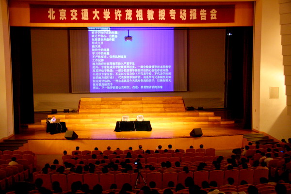 2007年,我校在教育部本科教學(xué)工作水平評估中榮獲優(yōu)秀佳績。為進一步加強內(nèi)涵建設(shè),鞏固教評成果,使教學(xué)工作再上新臺階,全面提高教學(xué)質(zhì)量,我校專程邀請教育部本科教學(xué)工作水平評估專家、北京交通大學(xué)許茂祖教授來校講學(xué)。