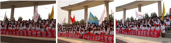 圣火傳遞在即,我校校園里到處洋溢著盼奧運、迎圣火的濃濃氛圍。對于即將零距離感受“祥云”火炬的激情溫度、體驗奧運的榮耀,全體師生倍感驕傲和自豪。圍欄處彩旗招展,體現(xiàn)著歡樂、喜慶、熱烈的氣氛;樓宇間條幅高掛,“齊齊哈爾大學(xué)師生喜迎奧運圣火”、“迎奧運 講文明 樹新風(fēng)”、“文明和諧的齊齊哈爾為奧運火炬添光彩”等30余條標(biāo)語十分醒目,文明、和諧、開放、陽光的齊大正為圣火順利傳遞做最后的準(zhǔn)備。