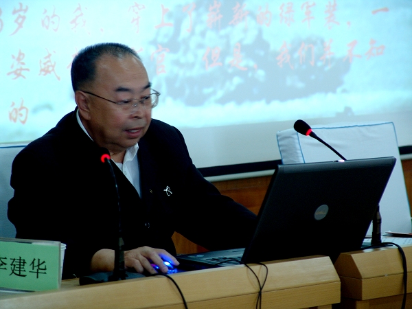 報告正式開始前,李建華大校首先播放了1964年10月16日我國第一顆原子彈爆炸的短片。隨后他從“學(xué)生時代”、“親歷中國首次核試驗”、“在執(zhí)行核試驗任務(wù)中的幾點體會”、“思維方法、學(xué)習(xí)方法與工作方法”等幾個方面進行了詳細(xì)的講解。李建華大校用自己童年的苦難經(jīng)歷與現(xiàn)在的優(yōu)越條件做對比,多次強調(diào)“打牢基礎(chǔ)”與“艱苦奮斗”的重要性。在他的工作體會中,明確了愛黨、信任黨的精神,并提出“不怕苦、不怕死”是參試員的本色,“勤儉節(jié)約、艱苦奮斗”是參試員的美德。