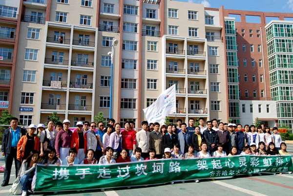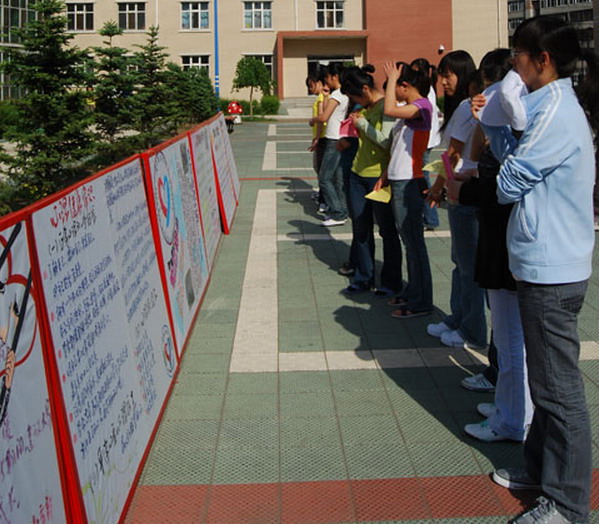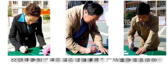 校黨委副書記王鳳琴、副校長姜守訓(xùn)、副校長鄭喜群以及黨委宣傳部長李敏義、教務(wù)處長李英杰、指導(dǎo)中心副主任吳剛等出席宣傳活動并參加了主題為“攜手走過坎坷路,架起心靈彩虹橋”的大型簽名活動。