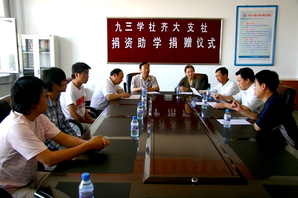 6月10日下午13時30分,九三學(xué)社齊大支社捐資助學(xué)捐贈儀式在人文學(xué)院舉行。九三學(xué)社齊大支社主委宋波、支委石志國、校學(xué)工部(處)副處長吳寶柱、人文學(xué)院副書記副院長張振民、校統(tǒng)戰(zhàn)部副部長田志峰、校學(xué)生處資助科科長張培華、人文學(xué)院學(xué)工辦主任袁冰巖等參加了捐贈儀式。