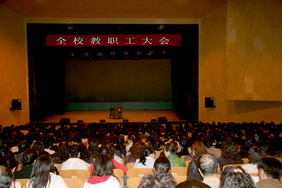 發(fā)布日期:2008-04-18 點擊量:4月16日下午3:30,我校在中區(qū)文化宮隆重召開了全校教職工大會,全面部署了本學(xué)年特別是本學(xué)期的各項工作,唱江華校長發(fā)表了講話;校黨委副書記史鐵成主持了大會,全校教職工參加了大會。