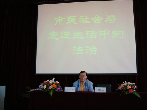 講座中,馬教授從獨(dú)特的視角講述了“市民社會與法治的內(nèi)在關(guān)聯(lián)”、“看得見的中國市民社會”、“走進(jìn)生活中的法治”等問題,使我們對法治生成、法律移植、公民法律意識的理解更加透徹和深入。講座過程中,同學(xué)們被馬教授生動、幽默的語言,機(jī)敏的思維、精彩透徹的講解深深吸引,整場講座不時被陣陣熱烈的掌聲打斷。
