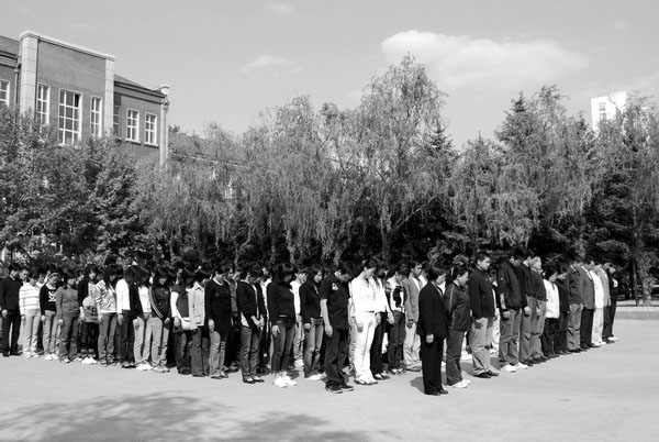 體育學院師生集體哀悼遇難同胞