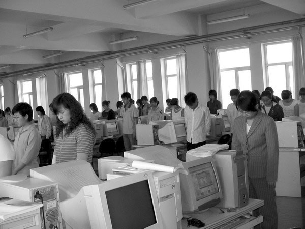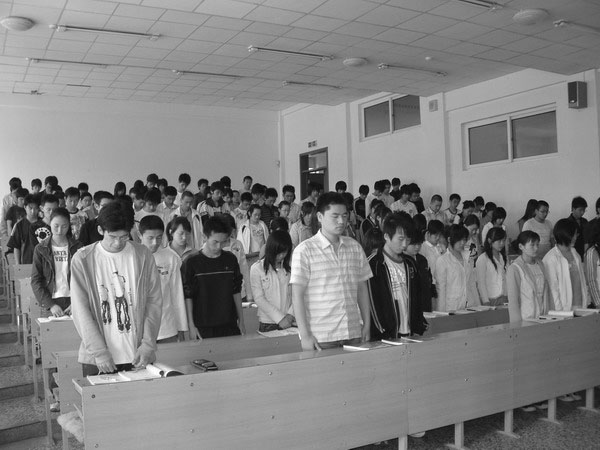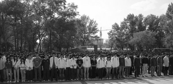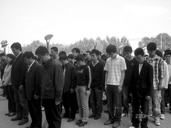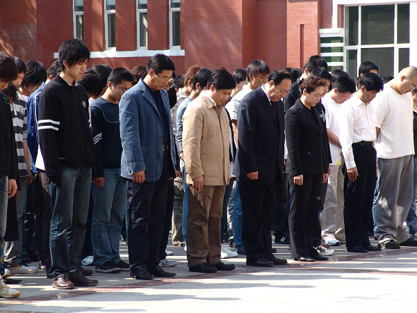 計算中心上課的師生集體哀悼遇難同胞