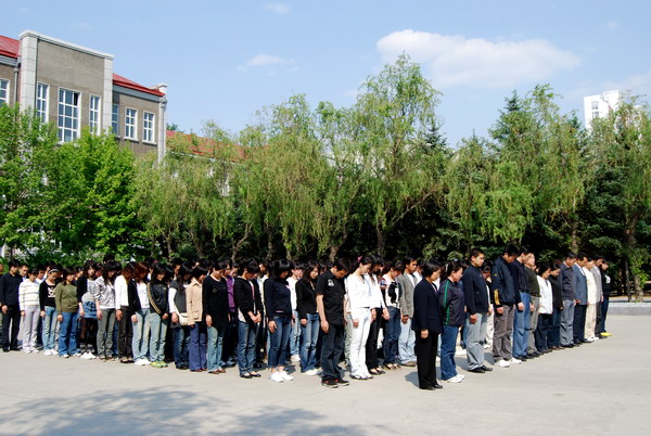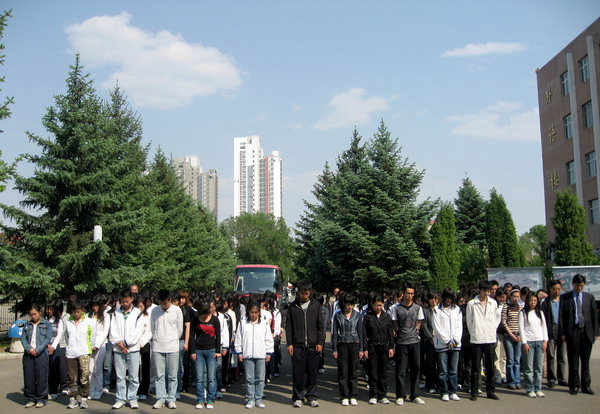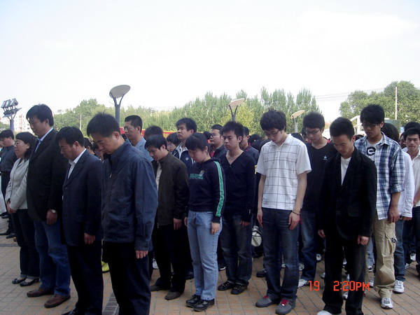 下午2時28分,齊齊哈爾大學全體師生以鳴笛為令,向汶川大地震遇難同胞默哀三分鐘。