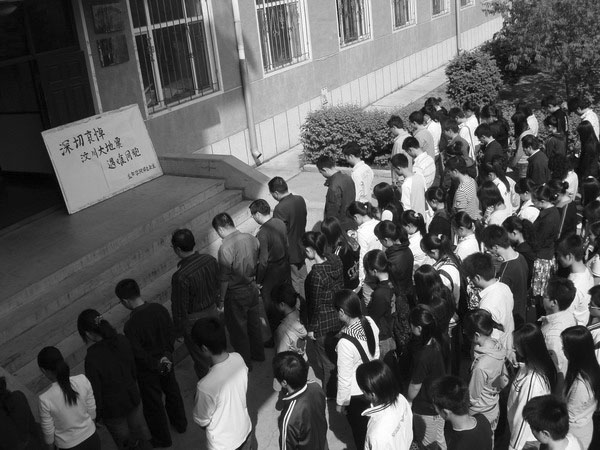 我校萬名師生深切哀悼汶川大地震遇難同胞