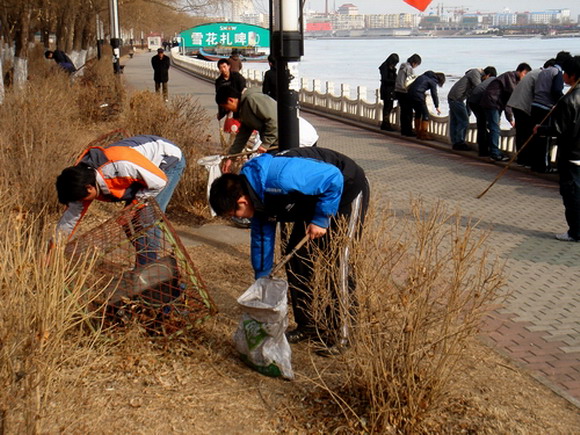 三月的鶴城,乍暖還寒。機(jī)械工程學(xué)院參加活動(dòng)的250余名學(xué)生高舉著彩旗,列隊(duì)來到了勞動(dòng)湖畔。同學(xué)們紛紛彎腰、拾撿各種廢棄物,甚至連極為碎小的紙屑也都仔細(xì)地清理干凈。經(jīng)過近一個(gè)小時(shí)的清理活動(dòng),風(fēng)景如畫的勞動(dòng)湖畔顯得更加潔凈、靚麗。