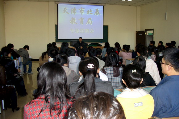新學(xué)期伊始,天津市北辰區(qū)教育局一行六人,在郭建新副局長(zhǎng)的帶領(lǐng)下,行程1400多公里,專(zhuān)程選聘人才,第一站就來(lái)到我校選聘2008屆畢業(yè)生。我校學(xué)生指導(dǎo)中心對(duì)北辰區(qū)教育局招聘團(tuán)隊(duì)的再次到來(lái)給予熱烈地歡迎與大力協(xié)助,為搭建畢業(yè)生就業(yè)與用人單位的雙選平臺(tái)提供了優(yōu)質(zhì)服務(wù)。