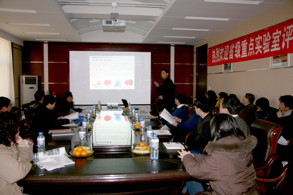 我校精細化工重點實驗室主任郭祥峰教授采用PPT形式在評估工作會議上作了情況匯報,就實驗室的基本建設、科學研究、人才隊伍建設、開放與聯(lián)合、實驗室管理等情況作了詳細說明,并一一回答了專家的提出的問題。