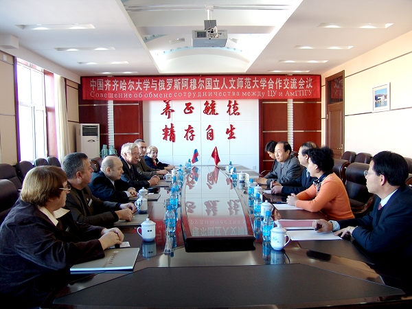 尼基金?亞歷山大副校長(zhǎng)在講話中對(duì)我校的盛情接待表示感謝,對(duì)我校的辦學(xué)規(guī)模及近年來(lái)的飛速發(fā)展表示祝賀。他向我校領(lǐng)導(dǎo)轉(zhuǎn)達(dá)了阿穆?tīng)枃?guó)立人文師范大學(xué)校長(zhǎng)的友好問(wèn)候,并詳細(xì)介紹了俄羅斯阿穆?tīng)枃?guó)立人文師范大學(xué)的情況,表達(dá)了和我校深入開(kāi)展合作的愿望。亞歷山大副校長(zhǎng)向我校領(lǐng)導(dǎo)一一介紹了隨行的考察團(tuán)成員,各位成員相繼發(fā)表了講話。