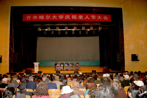 10月19日下午,我校全體離退休人員在中區(qū)文化宮里共聚一堂,隆重舉行“齊齊哈爾大學(xué)慶祝老人節(jié)大會”。校長唱江華、黨委副書記史鐵成、副校長曲偉建出席了慶祝大會,在走到與會老同志中間與他們親切握手,向他們祝賀節(jié)日,與全體離退休人員一起共慶“老人節(jié)”。