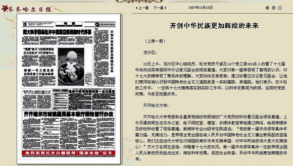 10月24日的《齊齊哈爾日報》等媒體對我校師生進行了收聽收看情況進行了熱忱報道。