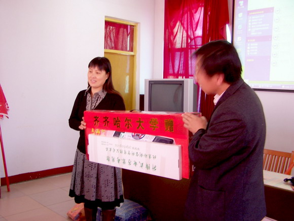 11:05,舉行了捐贈儀式。我校經(jīng)濟(jì)管理學(xué)院為龍江縣特殊教育學(xué)校贈送了電子琴、二胡、排球、學(xué)習(xí)用具等電教、文體用品。