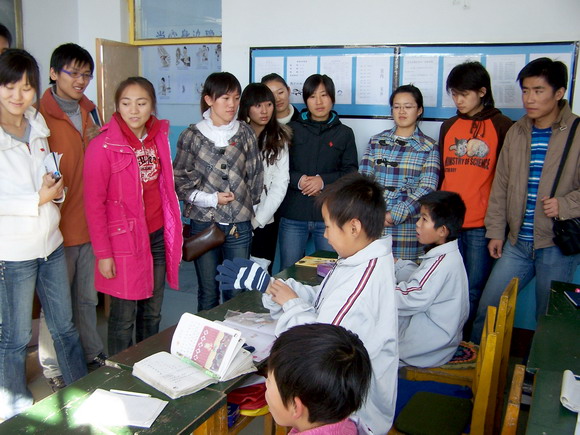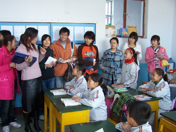 小朋友們?yōu)槲倚⒓又黝}社會實(shí)踐活動的師生表演了英語字母歌等生動有趣的節(jié)目;參加主題社會實(shí)踐活動的經(jīng)濟(jì)管理學(xué)院師生也為他們表演了精彩的節(jié)。手語歌曲《感恩的心》贏得了全體師生的共鳴。最后,在趙海鵬老師和特殊教育學(xué)校劉主任的詩朗誦《愛的感動》中的結(jié)束了聯(lián)誼活動。