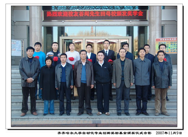谷闖校友在頒獎(jiǎng)儀式上講述了創(chuàng)立此項(xiàng)獎(jiǎng)勵(lì)基金的初衷,鼓勵(lì)自動(dòng)化專業(yè)學(xué)生要樹(shù)立創(chuàng)新意識(shí),勤奮學(xué)習(xí)、腳踏實(shí)地、勇于創(chuàng)新,不斷攀登新的科學(xué)技術(shù)高峰,并號(hào)召自動(dòng)化專業(yè)的學(xué)生將來(lái)有能力時(shí)都來(lái)為我校自動(dòng)化專業(yè)的發(fā)展作一些貢獻(xiàn)。