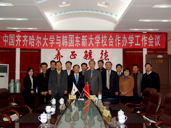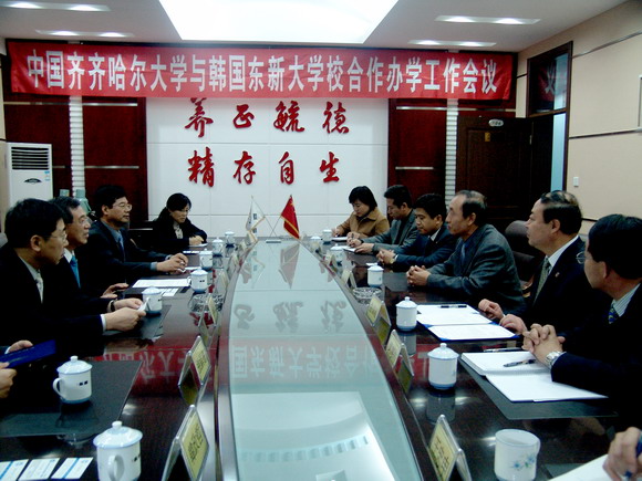 鄭奇彥總長(zhǎng)表示,在廣闊的大平原上,在美麗的勞動(dòng)湖畔,有這樣一所高水平的大學(xué),使人感到非常高興。參觀了美麗的齊大校園,讓人心情愉快。齊大人熱情友好,讓人心里很溫暖。齊齊哈大學(xué)真是到中國(guó)留學(xué)和學(xué)習(xí)漢語(yǔ)普通話的好地方,給他留下了非常美好而難忘的印象。他說(shuō),韓國(guó)東新大學(xué)校將進(jìn)一步加強(qiáng)與齊大的交流與合作,為提升合作辦學(xué)水平而共同努力。