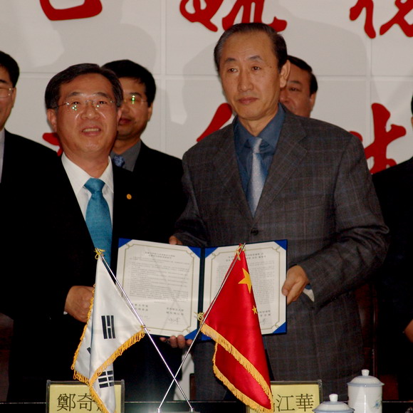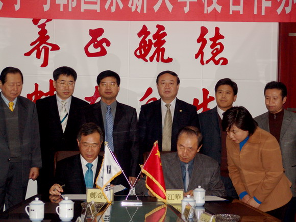 我校校長(zhǎng)唱江華、副校長(zhǎng)曲偉建、鄭喜群出席合作辦學(xué)工作會(huì)議,教務(wù)處處長(zhǎng)李英杰、外事處副處長(zhǎng)郭寒竹、王忠申、我校駐韓國(guó)聯(lián)絡(luò)處主任張琪德先生等參加了會(huì)見(jiàn)及簽字儀式。