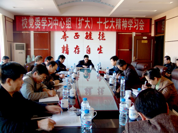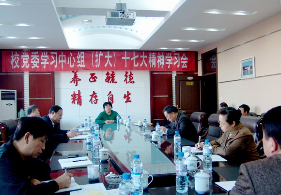 按照校黨委《關(guān)于認(rèn)真學(xué)習(xí)貫徹黨的十七大精神的意見(jiàn)》提出的學(xué)習(xí)要求,11月13日下午,校黨委理論學(xué)習(xí)中心組在機(jī)關(guān)辦公樓504會(huì)議室舉辦十七大精神第三次集體學(xué)習(xí)。