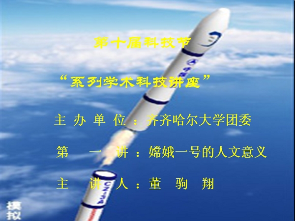 董教授首先講述了人類(lèi)航天事業(yè)的發(fā)展史和各國(guó)在航天事業(yè)中取得的偉大成就。之后,還從發(fā)射“嫦娥一號(hào)”的目的、“嫦娥一號(hào)”發(fā)射成功的現(xiàn)實(shí)意義以及中國(guó)未來(lái)航天事業(yè)的前景等方面進(jìn)行了深入的講解,不但使同學(xué)們了解了航天事業(yè)的發(fā)展和“嫦娥一號(hào)”的人文意義,而且開(kāi)闊了同學(xué)們的視野,增長(zhǎng)了知識(shí)。