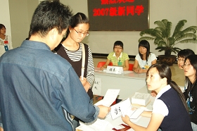 新生入學(xué)“綠色通道”手續(xù)是家庭經(jīng)濟(jì)困難學(xué)生入學(xué)的第一道敞開的大門,學(xué)校在設(shè)置“綠色通道”手續(xù)的同時,本著服務(wù)學(xué)生的原則,根據(jù)學(xué)生報到的校區(qū)不同,將辦理地點(diǎn)分為西區(qū)、東區(qū)兩處,并且每處均與學(xué)校各學(xué)院及相關(guān)手續(xù)辦理處保證有最近的距離,以方便學(xué)生。報到新生在登上學(xué)校的新生報到接站專用車的同時,就會獲得一份包括介紹“綠色通道”在內(nèi)的宣傳單,并在報到處有專人指領(lǐng),到“綠色通道”辦理處履行手續(xù)。除具體工作老師外,學(xué)校還指派20名學(xué)生干部成立了“綠色通道”服務(wù)小組,負(fù)責(zé)向特困生及家長說明助學(xué)金、獎學(xué)金、特困補(bǔ)助、勤工助學(xué)等的有關(guān)情況,并詳細(xì)登記有關(guān)信息。工作人員詳細(xì)耐心,百問不煩,百答不厭,讓貧困生充分感受到黨和國家、學(xué)校和老師的溫暖與關(guān)愛。