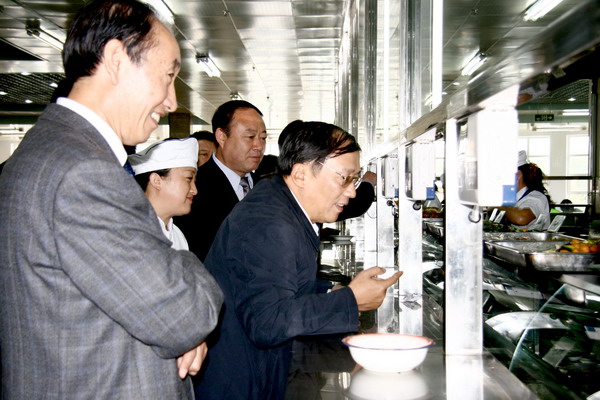 11:45,恰值學(xué)生午餐時間。程幼東副省長一行來到了中區(qū)三樓的學(xué)生餐廳,與師生一道共進(jìn)午餐,受到了師生們的熱烈歡迎。
