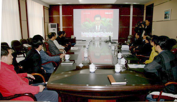 10月15日上午9時,舉世矚目的中國共產(chǎn)黨第十七次全國代表大會在北京人民大會堂隆重開幕。校黨委理論學(xué)習(xí)中心組全體成員在辦公樓504會議室集中收聽收看了黨的十七大開幕式盛況。