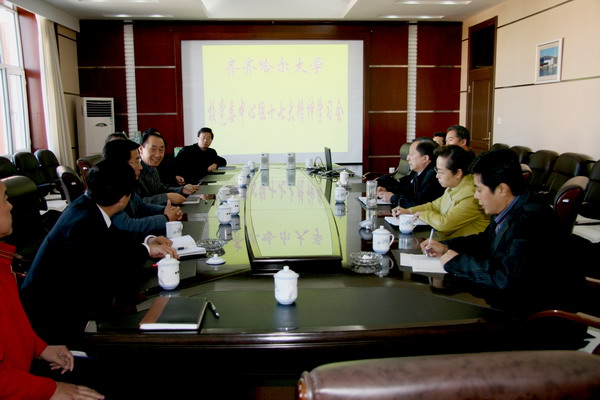 校黨委理論學(xué)習(xí)中心組全體成員集體聆聽了胡錦濤總書記代表中國共產(chǎn)黨第十六屆中央委員會向大會作了題為《高舉中國特色社會主義偉大旗幟為奪取全面建設(shè)小康社會新勝利而奮斗》的報告。