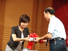 報(bào)告會(huì)前,校長唱江華熱情地向敬一丹女士發(fā)出邀請(qǐng),聘請(qǐng)其為我校教育傳媒學(xué)院特聘教授,敬一丹女士高興地接受了邀請(qǐng)并將其創(chuàng)作出版的個(gè)人專著捐贈(zèng)給我校。