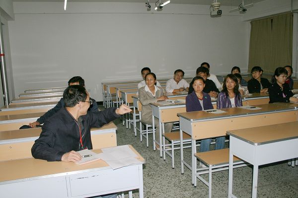 9月24日晚20時30分,專家組成員仇鴻偉教授與章躍教授在25教120教室進行了學生外語基本技能測試。