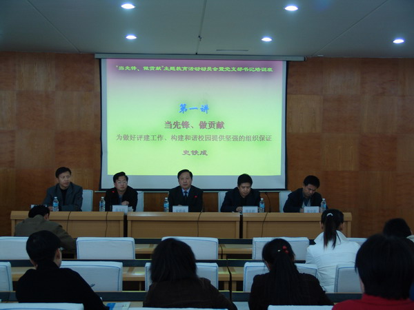 校黨委舉辦此次黨支部培訓(xùn)班,旨在深入學(xué)習(xí)貫徹十六屆六中全會(huì)精神和全國(guó)第十五次高校黨建工作會(huì)議精神,提高黨支部書記理論素質(zhì)和業(yè)務(wù)素質(zhì),進(jìn)一步加強(qiáng)基層黨組織建設(shè),推動(dòng)“當(dāng)先鋒、做貢獻(xiàn)”主題教育活動(dòng)和“雙優(yōu)培養(yǎng)工程”的深入開(kāi)展。
