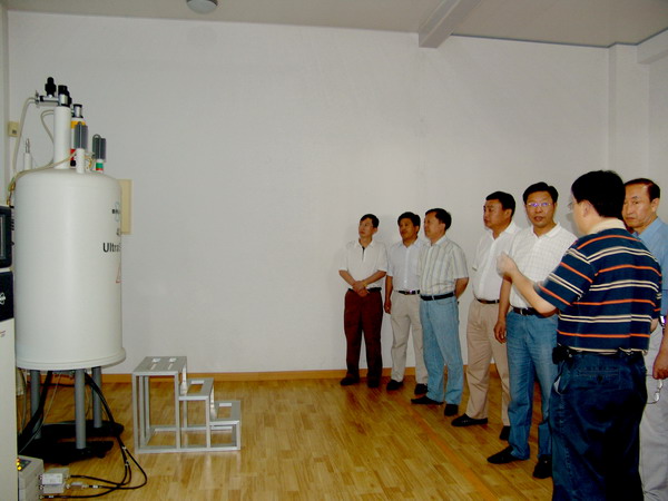 匯報(bào)會(huì)結(jié)束后,省政府、省教育廳領(lǐng)導(dǎo)一行在校領(lǐng)導(dǎo)、市政府有關(guān)部門負(fù)責(zé)人陪同下視察了化學(xué)與化學(xué)工程學(xué)院400兆超導(dǎo)核磁共振、分析測(cè)試中心等實(shí)驗(yàn)室等。