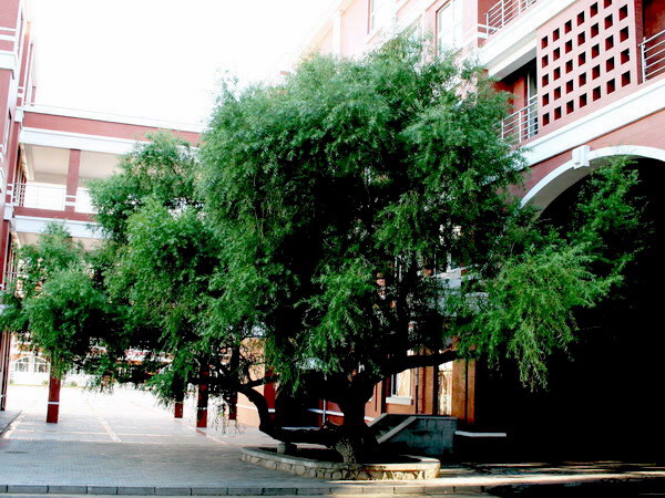 2005年,學(xué)校在新建中區(qū)圖書館與教學(xué)樓之時,把這株飽經(jīng)風(fēng)雨的古樹作為重點對象保護(hù)了起來,不僅在規(guī)劃設(shè)計上做了通盤考慮,而且在施工時特地安裝了防護(hù)網(wǎng),進(jìn)行了精心地管護(hù)。新樓落成了,古樹不僅安然無恙,而且愈益繁茂,呈現(xiàn)了靚麗的新姿。