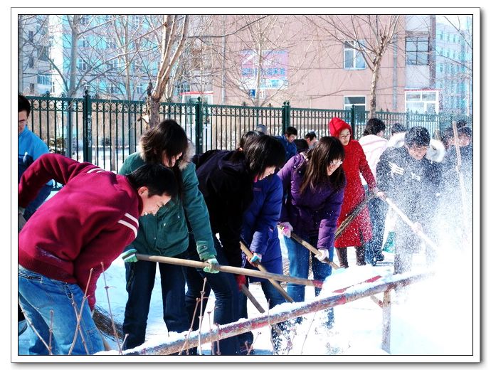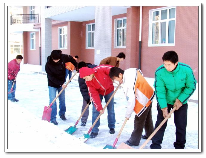 3月10日上午,我校以雪為令,萬名師生積極投身到清理校園積雪活動。后勤處統(tǒng)籌協(xié)調(diào),科學(xué)部署;各院(系)領(lǐng)導(dǎo)高度重視,精心組織;學(xué)生干部以身作則,黨團(tuán)員充分發(fā)揮先鋒模范作用,廣大師生積極參加,春日的校園里到處都是廣大師生清冰運(yùn)雪的忙碌身影。