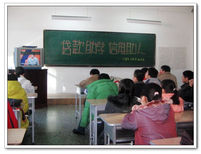 1月4日至18日,我校認(rèn)真貫徹落實《教育部辦公廳中國人民銀行辦公廳關(guān)于認(rèn)真做好組織觀看學(xué)習(xí)〈貸款助學(xué) 信用助人〉宣傳教育主題片的通知》(教財廳函〔2006〕30號)和省教育廳有關(guān)文件精神,組織全體國家助學(xué)貸款學(xué)生于寒假前集中觀看了《貸款助學(xué) 信用助人》宣傳教育片,收到了良好的效果。