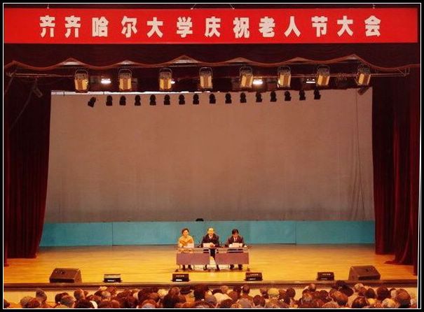 10月30日下午,我校中區(qū)文化宮里全體離退休人員共聚一堂,隆重舉行“齊齊哈爾大學(xué)慶祝老人節(jié)大會”,校長唱江華、副校長張忠恒出席了慶祝大會,與全體離退休人員一起共慶“老人節(jié)”,離退休工作處副處長韓樹勤主持了慶祝大會。