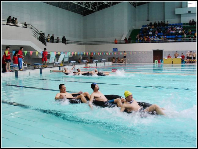 此次比賽項(xiàng)目包括男、女教工50米、100米、200米蛙泳50米、100米自由泳等單項(xiàng)項(xiàng)目;4X50米自由泳接力的集體項(xiàng)目以及同舟共濟(jì)(50米)、疊板接力(20米)等趣味性游藝項(xiàng)目。此次比賽所有項(xiàng)目均為一次性決賽;單項(xiàng)競(jìng)技游泳采用中國游泳協(xié)會(huì)審定的2003年《游泳競(jìng)賽規(guī)則》和有關(guān)補(bǔ)充規(guī)定。