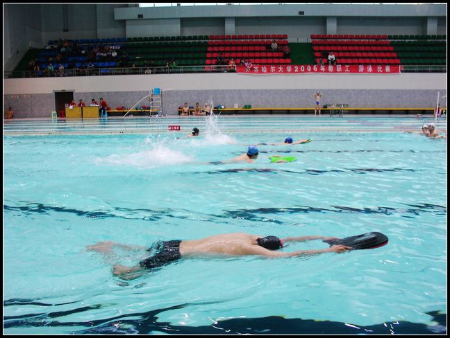 為進(jìn)一步開展好校園體育活動(dòng),豐富校園文化生活,增強(qiáng)教職工身體素質(zhì),提高全校教職工游泳競(jìng)技水平,加強(qiáng)各基層工會(huì)間的聯(lián)系,構(gòu)建和諧校園,校工會(huì)于2006年12月13—14日在學(xué)校游泳館舉辦了2006年教職工游泳比賽。 全校16個(gè)基層工會(huì)100多名教職工分別參加了22個(gè)項(xiàng)目的游泳比賽,校長唱江華、副校長曲偉建、工會(huì)主席呂曉輝等與教職工同場(chǎng)競(jìng)賽,校黨委副書記史鐵成、王鳳琴、紀(jì)委書記張學(xué)軍等到游泳館比賽賽場(chǎng)觀看賽況并為參賽人員加油、鼓勁。