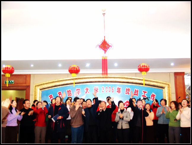 發(fā)布日期:2006-12-28 點(diǎn)擊量:12月22日晚,嫩江賓館宴會(huì)大廳張燈結(jié)彩、歡聲笑語,一派歡樂祥和的氣氛。值此辭舊迎新之際,我校教職員工黨內(nèi)黨外,歡聚一堂,一年一度的統(tǒng)戰(zhàn)工作聯(lián)誼會(huì)在這里隆重舉行。 市政協(xié)副主席、市委統(tǒng)戰(zhàn)部長王光、市政協(xié)副主席、九三學(xué)社市委主委孫柏林、民革市委主委張敬先、市僑聯(lián)主席遲國強(qiáng)、農(nóng)工民主黨市委副主委王蘇平、民盟市委副主委李濤、市委統(tǒng)戰(zhàn)部副部長陳先懷、張麗杰、楊愛亭、市委統(tǒng)戰(zhàn)部黨派處副處長王紹忠、周宇和我校校領(lǐng)導(dǎo)唱江華、史鐵成、王鳳琴、張學(xué)軍、曲偉建、姜守訓(xùn)、張忠恒、鄭喜群、鄧啟剛、呂曉輝及我校省、市、區(qū)三級(jí)政協(xié)委員;民盟、民革、九三學(xué)社、農(nóng)工民主黨、民建、民進(jìn)等黨派組織成員的代表;無黨派人士代表;僑眷代表;海外歸國人員代表、少數(shù)民族代表以及各基層黨委領(lǐng)導(dǎo)和相關(guān)職能部門負(fù)責(zé)人共敘團(tuán)結(jié)友誼之情,暢言齊大美好未來。