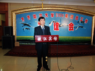 最后,她指出,2007的腳步已如約而至,新年的鐘聲即將敲響。在這美好的時(shí)刻,讓我們共同祝愿偉大的祖國繁榮昌盛,祝愿美麗的鶴城蒸蒸日上,祝愿齊齊哈爾大學(xué)的明天更加美好。最后,祝同志們、朋友們,新年快樂,幸福安康!愿我們的友誼地久天長!