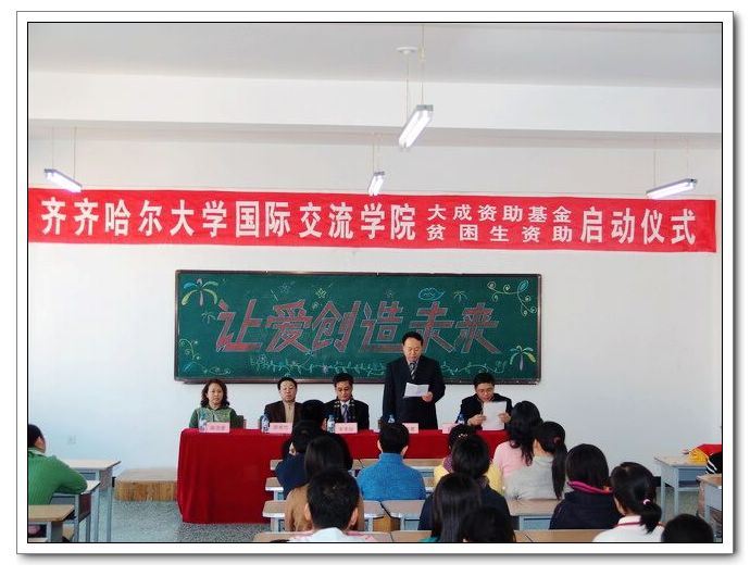 啟動儀式開始后,國際交流學(xué)院副院長郭寒竹首先宣讀了《齊齊哈爾大學(xué)國際交流學(xué)院“大成資助基金”管理暫行辦法》,明確了資助對象、資助條件、資助認(rèn)定、資助措施、資助管理以及注意事項等;宣讀了李奎喆先生及有關(guān)校領(lǐng)導(dǎo)、國際交流學(xué)院師生捐款情況;宣布了首批獲資助學(xué)生名單。