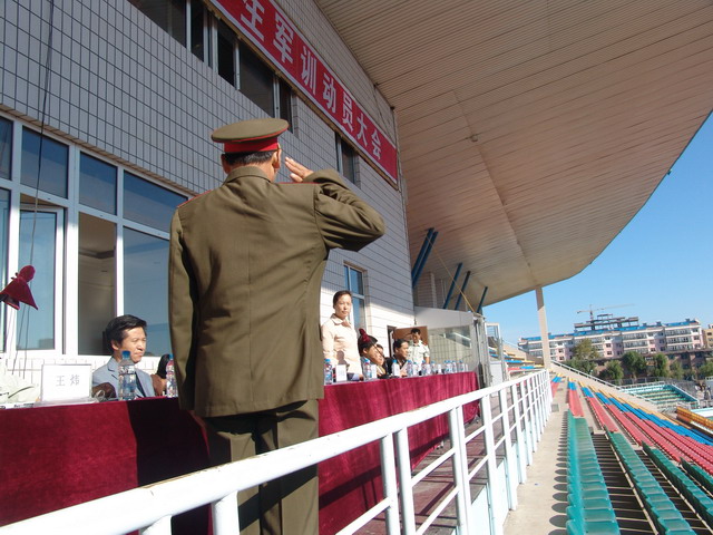 校黨委副書記、軍訓團副政委王鳳琴軍訓團代表學校做了動員講話。她指出,在這秋高氣爽、碩果累累的金秋時節(jié),學校迎來了來自全國各地的新同學。根據國防法、兵役法和國防教育法的有關規(guī)定及學校的總體工作部署,我校2006級新生軍訓今天正式拉開帷幕了。她謹代表學校黨政領導、軍訓團和全體師生對承擔軍訓任務的中國人民解放軍65447部隊官兵表示熱烈地歡迎和衷心地感謝!并向全體參訓同學表示親切地慰問!