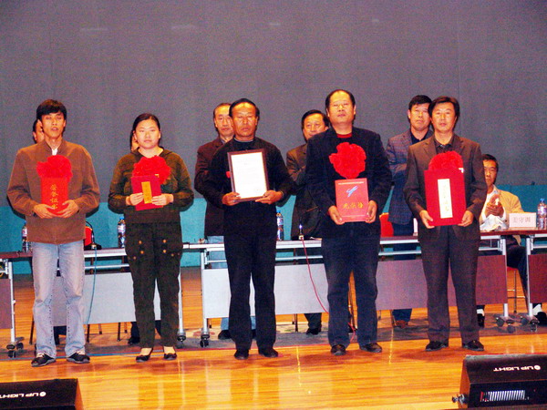 出席慶祝大會的校領(lǐng)導(dǎo)為獲獎集體和個(gè)人代表頒了獎。