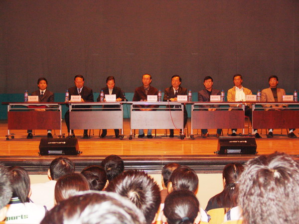 校黨委副書記史鐵成做了會議總結(jié)。他指出,在今天的慶祝大會上,表彰獎勵(lì)了一年來學(xué)校涌現(xiàn)出來的先進(jìn)集體和先進(jìn)個(gè)人,唱江華校長代表學(xué)校講話中對廣大教師表達(dá)了節(jié)日的真誠祝福,緊緊圍繞科學(xué)發(fā)展觀,結(jié)合學(xué)校改革、發(fā)展的實(shí)際,特別就如何實(shí)施“人才強(qiáng)校”戰(zhàn)略、加強(qiáng)師德建設(shè),做好“迎評”工作和“十一五”開局之年的工作做了全面部署,對廣大教職工提出了殷切的期望。學(xué)校要求各級組織、各部門、各單位認(rèn)真貫徹落實(shí)好會議精神,求真務(wù)實(shí),扎實(shí)工作,以堅(jiān)定的信念、昂揚(yáng)的斗志、創(chuàng)新的精神,全面推進(jìn)學(xué)校的各項(xiàng)工作,為實(shí)現(xiàn)教育部本科教學(xué)水平評估的既定奮斗目標(biāo),為把學(xué)校早日建設(shè)成省屬重點(diǎn)綜合性大學(xué),為培養(yǎng)社會主義的建設(shè)者和接班人做出新的更大的貢獻(xiàn),并再一次真誠地“祝全校老師節(jié)日快樂!”