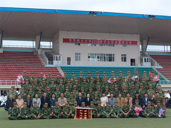 大會結(jié)束后,出席大會的校領(lǐng)導(dǎo)、軍訓(xùn)團(tuán)成員與參訓(xùn)部隊首長、教官合影留念。校長唱江華在歡送65447部隊官兵時代表學(xué)校向他們表示了感謝。校黨委副書記王鳳琴等與校武裝部負(fù)責(zé)人、各院領(lǐng)導(dǎo)及參訓(xùn)師生代表熱烈歡送圓滿完成軍訓(xùn)任務(wù)的65447部隊教官返回軍營。至此,我校2006級新生軍訓(xùn)工作圓滿結(jié)束。