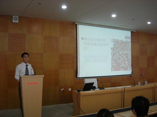畢業(yè)生如何選擇外資企業(yè)、合資企業(yè)就業(yè),如何設(shè)計個人的職業(yè)生涯規(guī)劃,這是許多在校學(xué)生希望了解的,5月24日,瑞士科萊恩公司中國有限公司北方區(qū)市場部經(jīng)理馬軍龍先生應(yīng)邀來到學(xué)校,就這方面的問題為輕紡學(xué)院及其他學(xué)院部分學(xué)生做了一場精彩的講座。 馬軍龍先生此次講座的題目是“畢業(yè)生職業(yè)生涯規(guī)劃”。如何規(guī)劃你的職業(yè)發(fā)展?畢業(yè)學(xué)生所從事的職業(yè)特點(diǎn)及其要求?外資企業(yè)對不同人才的要求;常見的面試問題及其背后的含義,如何準(zhǔn)備面試?如何進(jìn)行英文的自我陳述?馬軍龍先生就外國企業(yè)、合資企業(yè)對員工的要求,并結(jié)合中國大學(xué)生在外企、合企的工作情況,以及自己多年在外企中工作的經(jīng)歷和體會,從五個方面做了講解和說明。同學(xué)們感到這是一次非常有意義的講座,收獲很大。